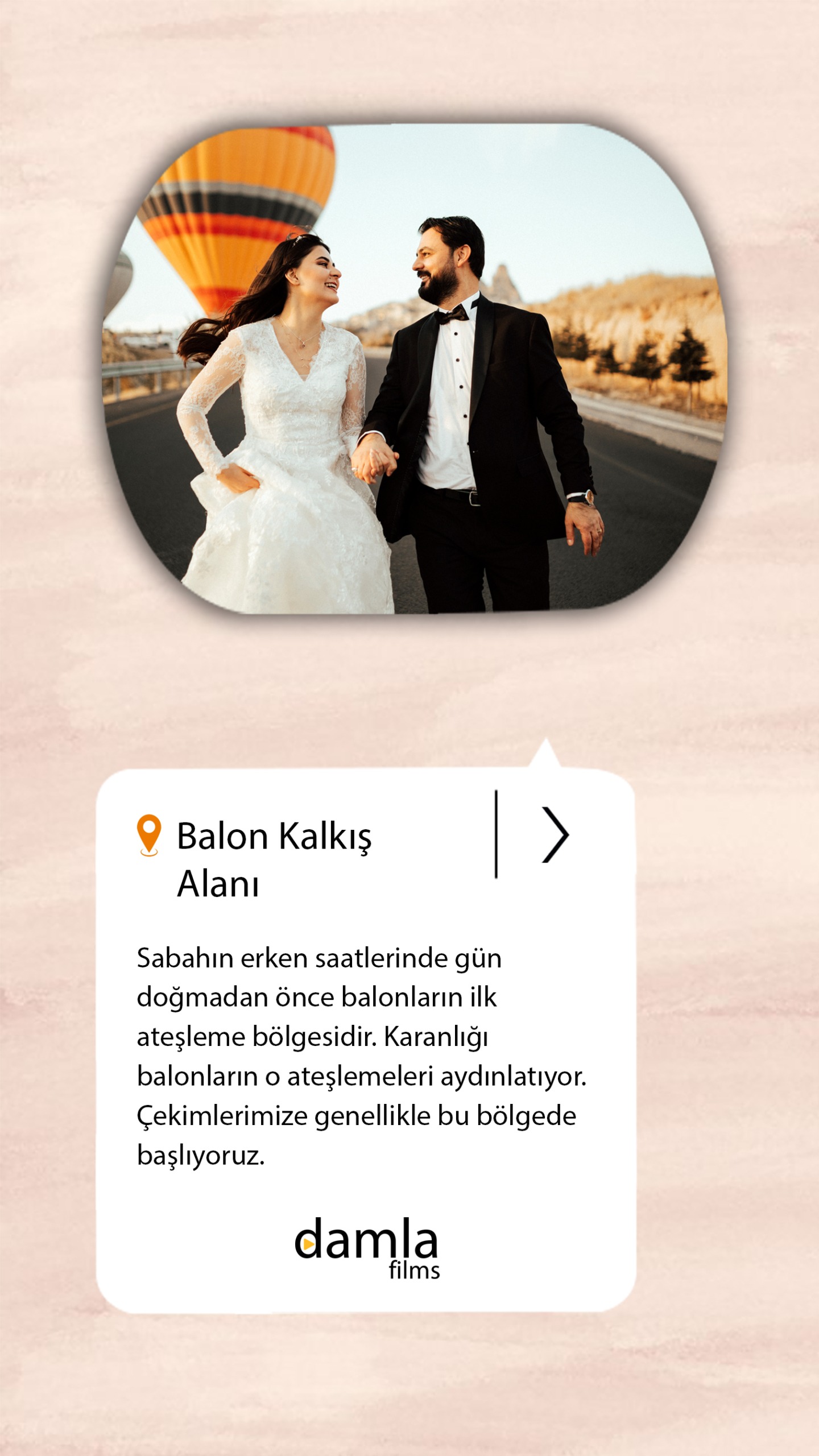 Sabahın erken saatlerinde gün doğmadan önce balonların ilk ateşleme bölgesidir. Karanlığı balonların o ateşlemleri aydınlatıyor. Gündoğumu çekimlerimize bu bölgeden başlıyoruz. Mekanın etkileyici atmosferi ve sıcak tonlardaki romantik dokusu ile birbirinden eşsiz fotoğraflar & videolara sahip olabilmektesiniz. Ayrıca mekanın geniş bir alan olması sebebiyle de oldukça etkileyici video sahnelerine ek olarak drone görüntüleri alınabilmektedir.