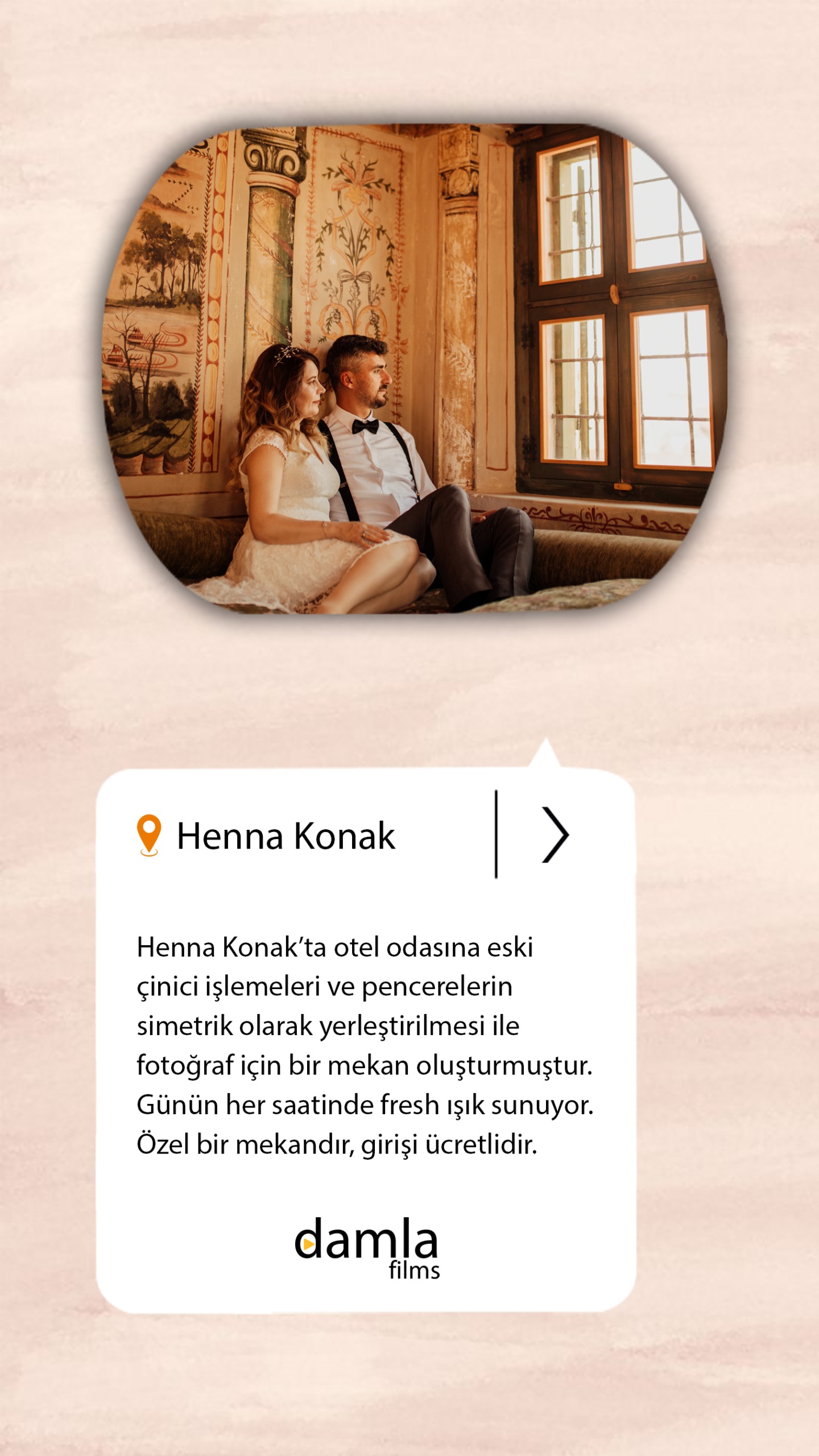 Bir mekan hayal edin.. İçerisinde tarihin en derinini, kapadokya dokusunun en güzelini barındırsın. Aşk Vadisi çevresinde kapadokya sıcak hava balonlarıı, romantik gün doğumu ve muhteşem enerjisi ile çiftlerimizin henüz çekime bile başlamadan büyülendiği bir konsepttir. Bu mekanda genel olarak gün doğumuna yakın saatlerde çekimler gerçekleştiriyoruz. Mekanın etkileyici atmosferi ve sıcak tonlardaki romantik dokusu ile birbirinden eşsiz fotoğraflar & videolara sahip olabilmektesiniz. Ayrıca mekanın geniş bir alan olması sebebiyle de oldukça etkileyici video sahnelerine ek olarak drone görüntüleride alınabilmektedir.